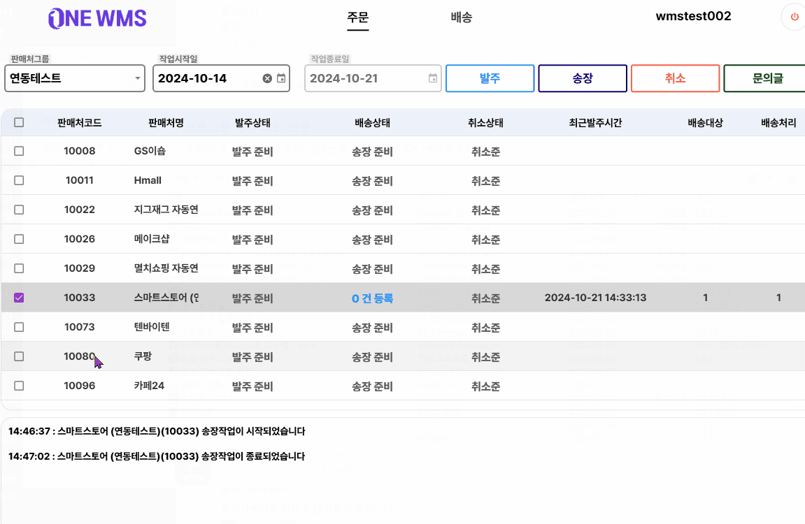 ONEWMS로 자동연동된 주문