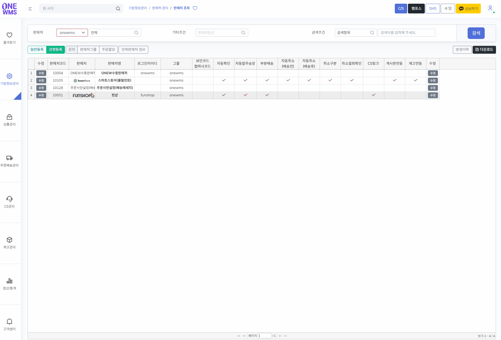 판매처는 [기본정보관리 > 판매처 조회] 에서 생성이 가능합니다.