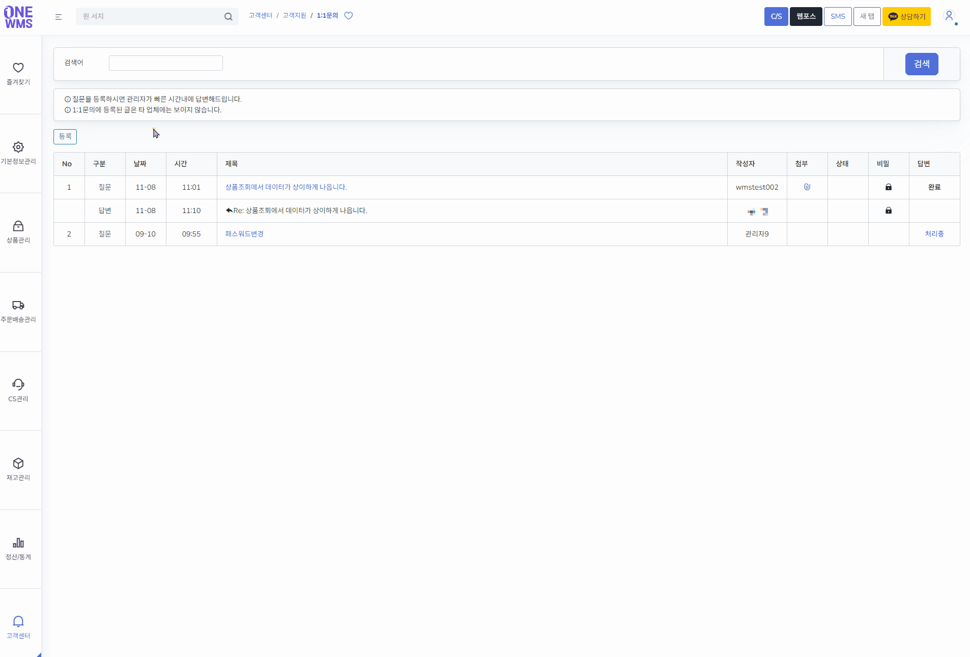 세팅 요청은 [고객센터 > 1:1문의] 를 통하여 진행합니다.