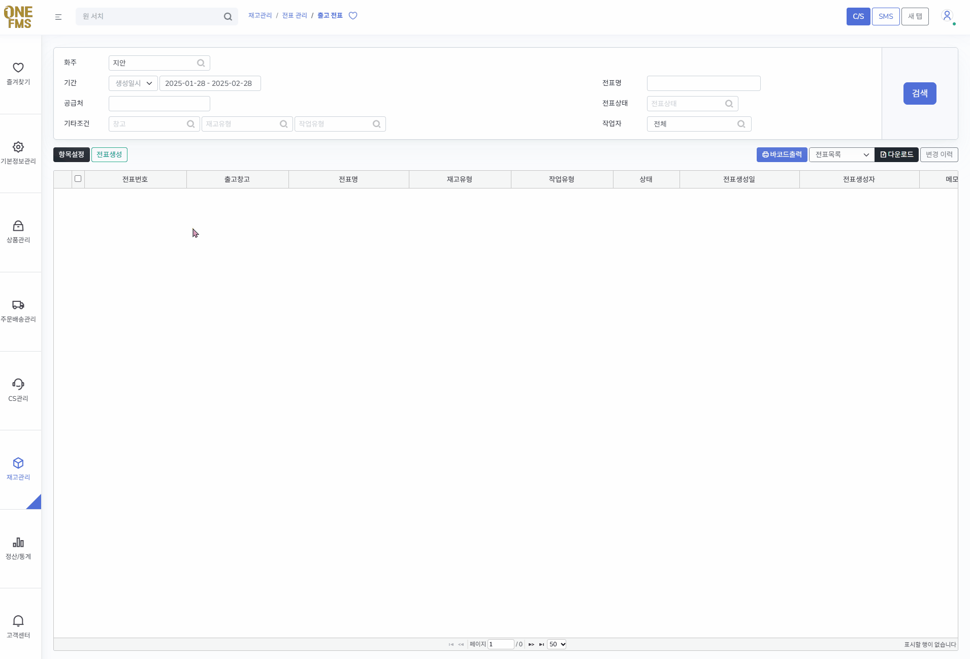 메뉴: [재고관리 > 전표 관리 > 출고 전표]