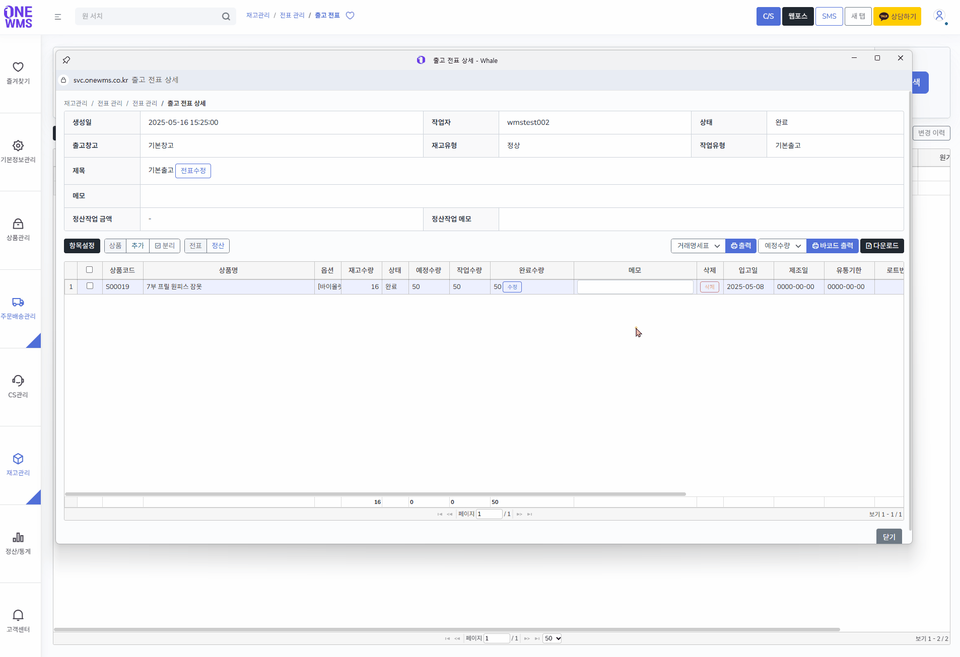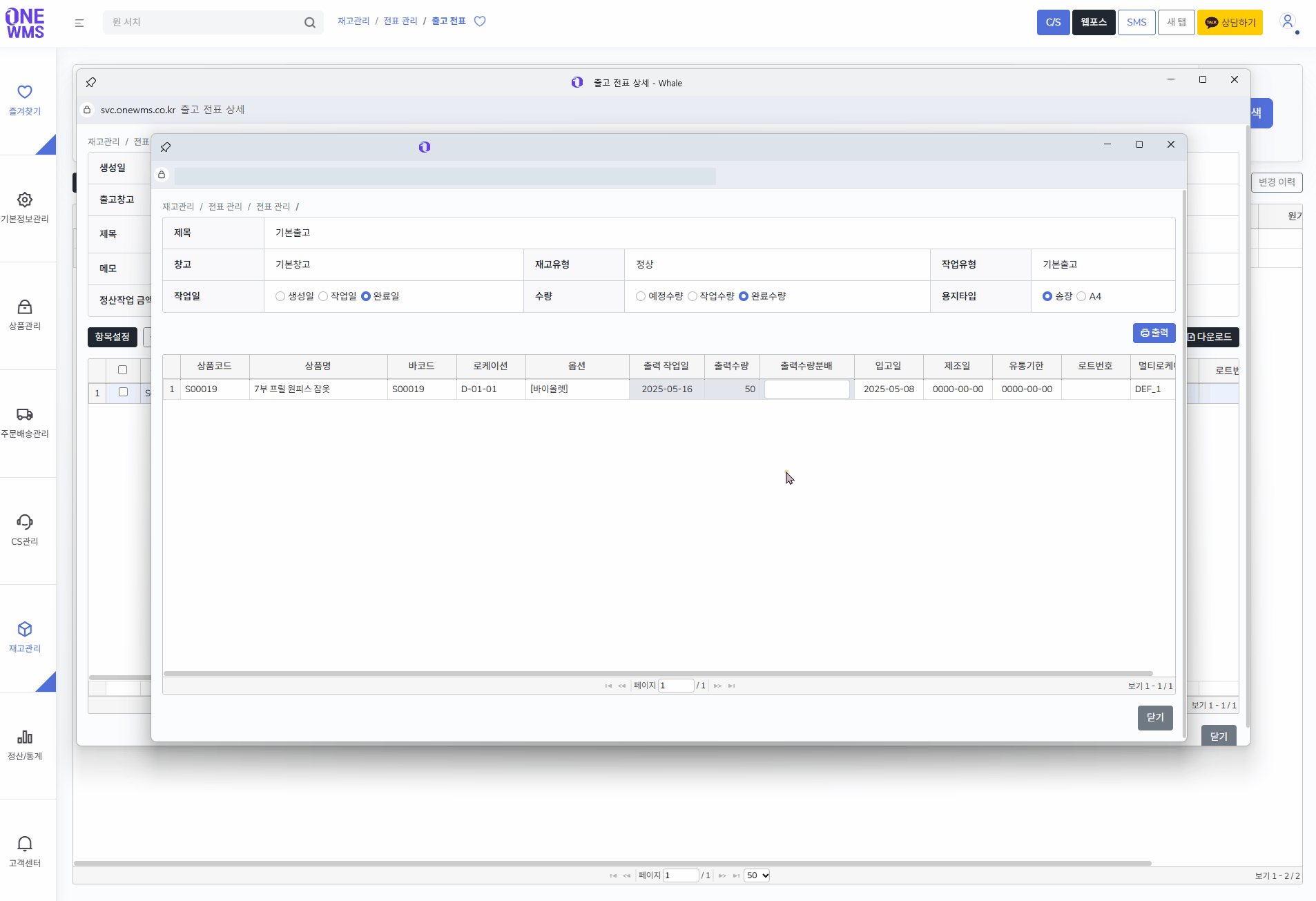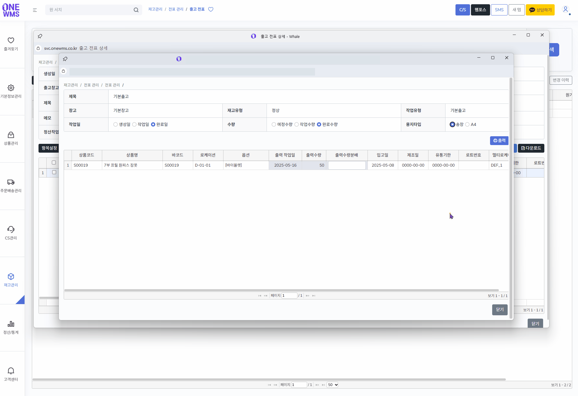 입고/출고 작업시 화물박스에 붙일 카드형태의 내용을 출력하여 활용할 수 있습니다.