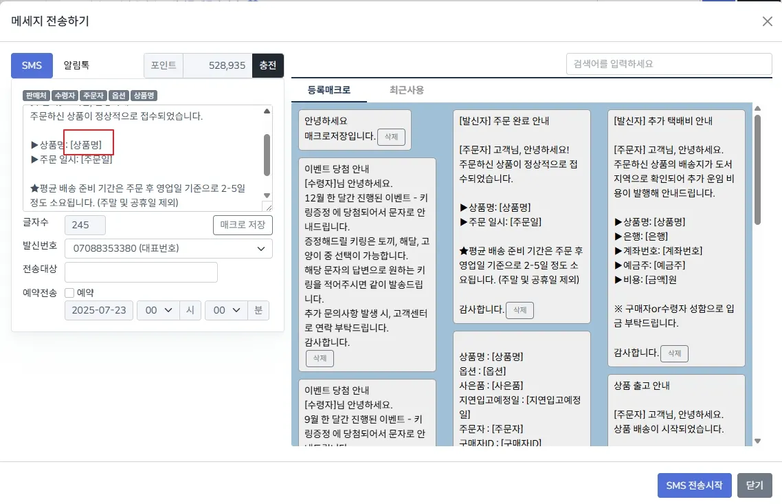 메세지전송 - 매크로 활용