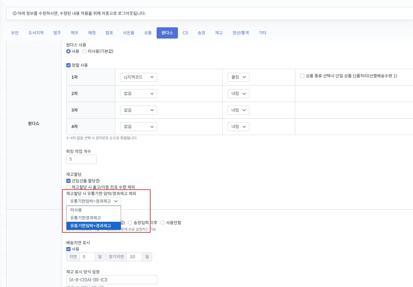 재고 할당 시에 유통기한이 임박하거나 경과한 재고에 대해서 재고할당을 제외할 수 있습니다.