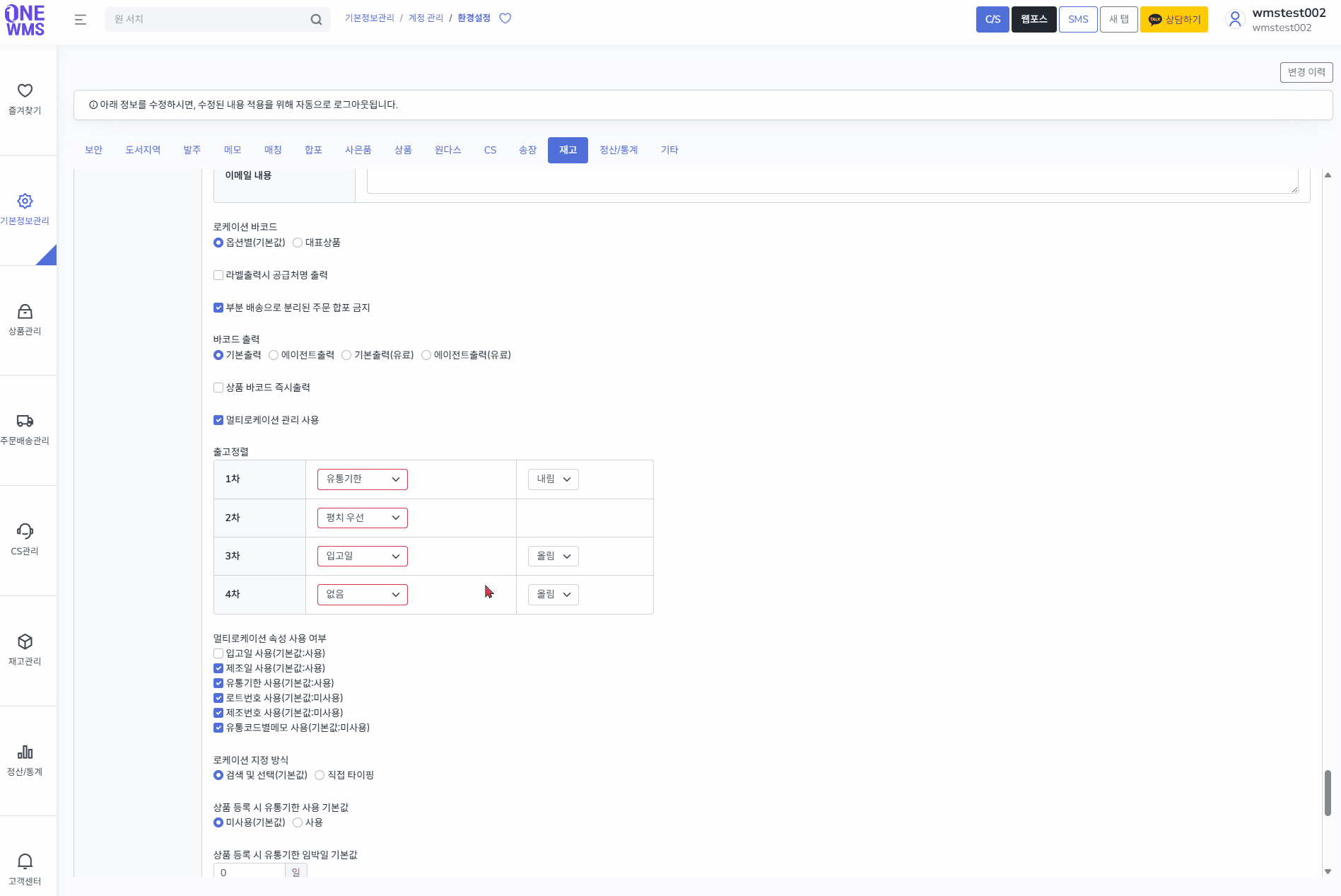 ex) 출고정렬 기준이 유통기한일 경우 유통기한 순대로 자동입력됩니다.