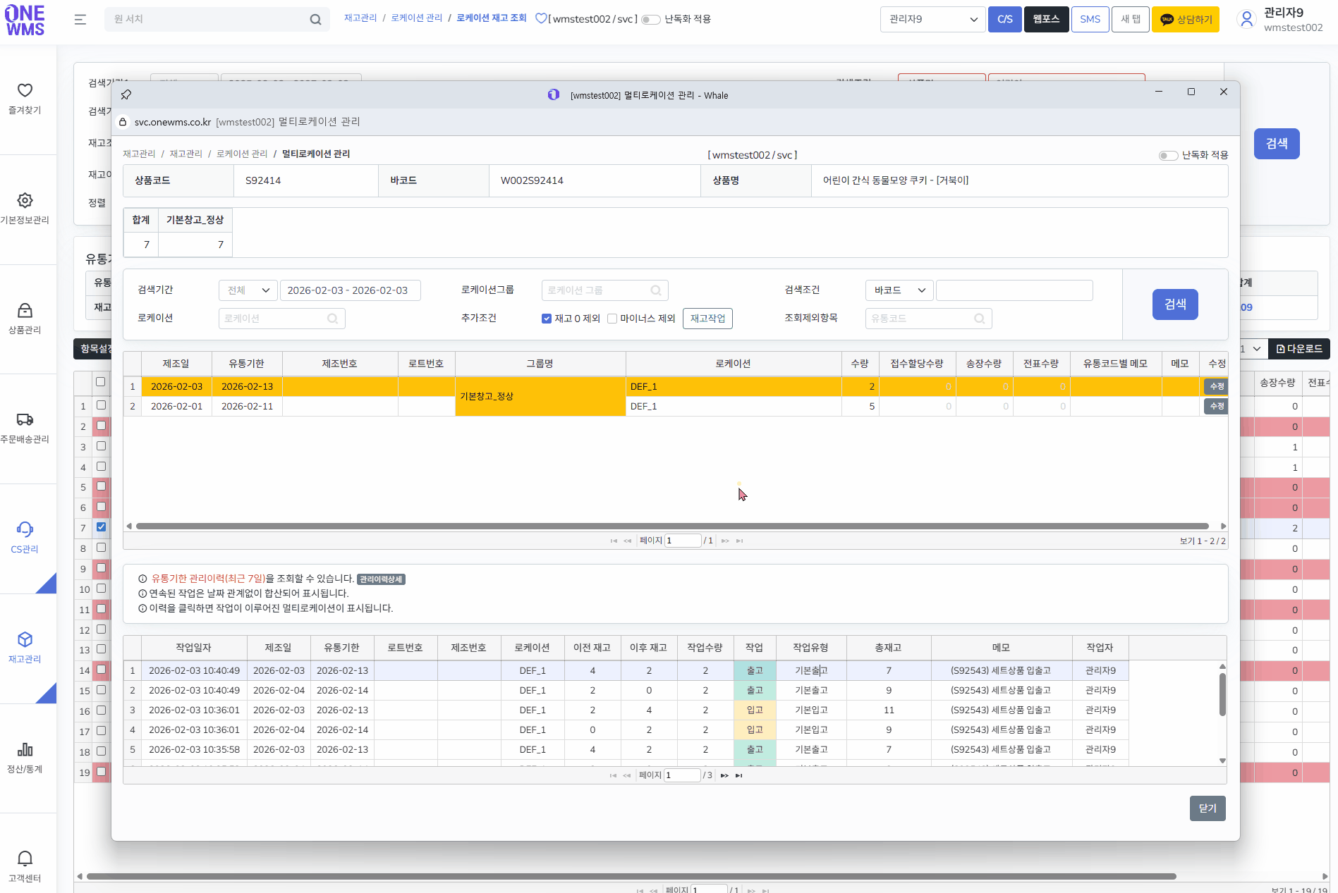 멀티로케이션을 사용할 경우, 세트 상품 재고 조회에서 출고정렬에 맞는 조합과 해제를 할 수 있습니다.