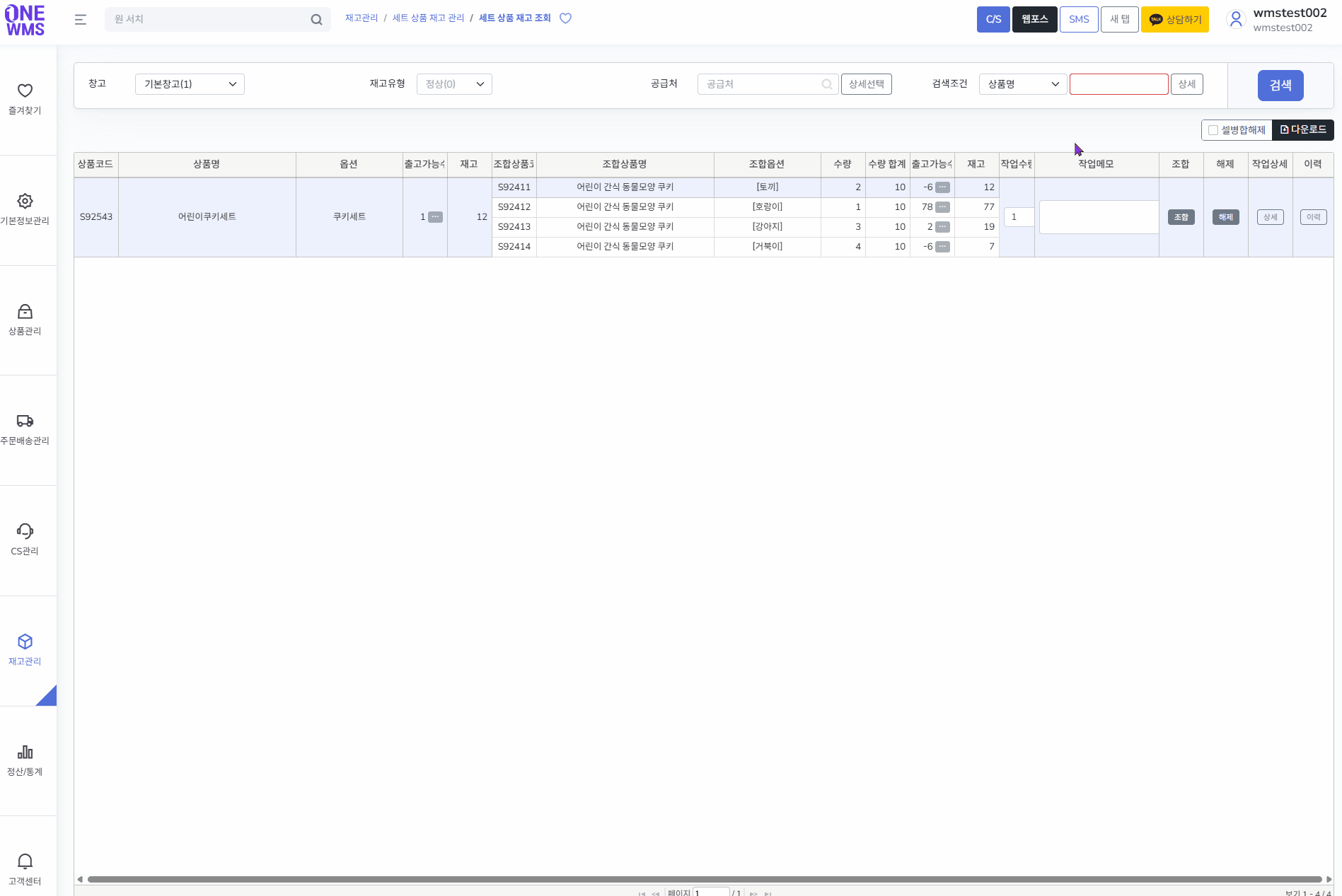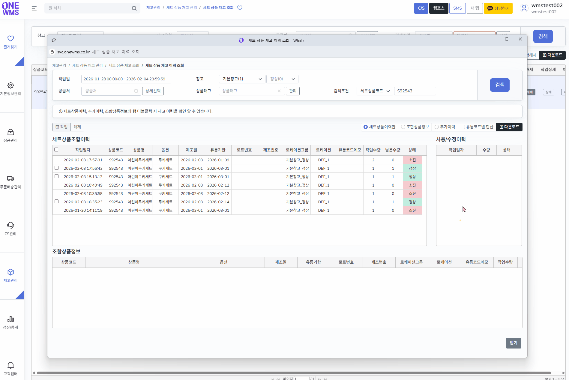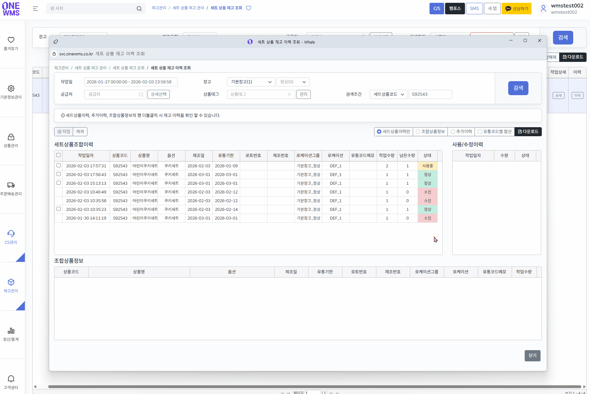 세트상품조합이력에서 해당 세트상품 재고를 선택 시, 조합된 상품 정보를 볼수있습니다.