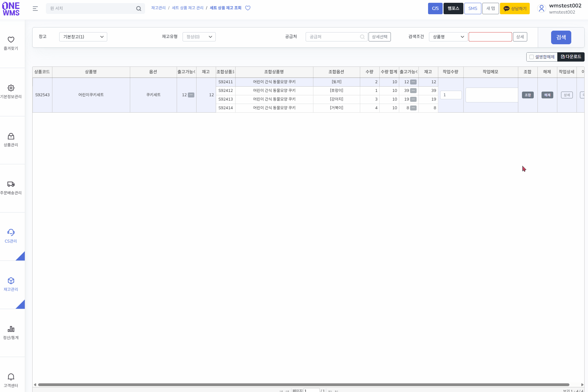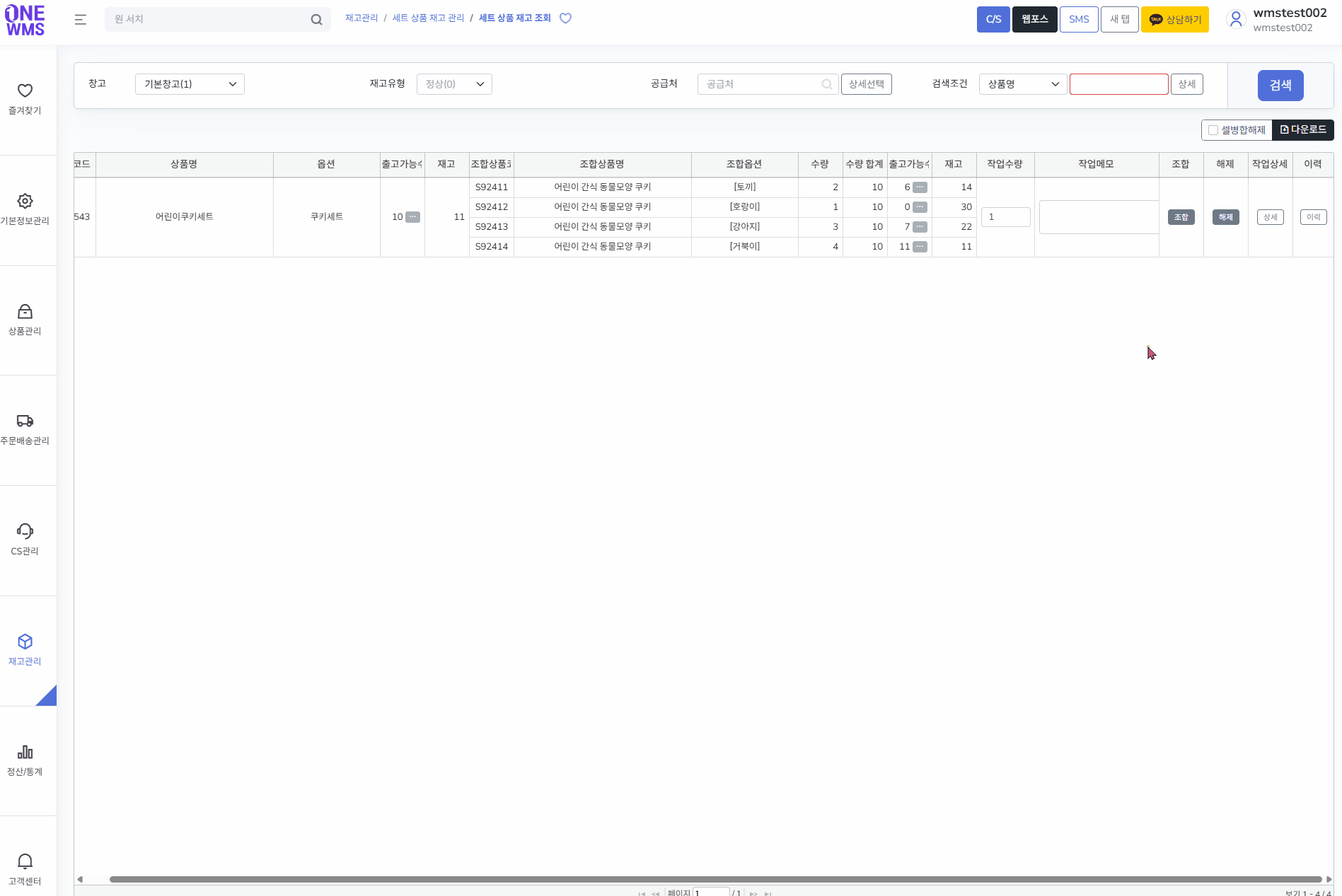 조합은 조합상품을 세트상품으로 재고이동 / 해제는 세트상품을 조합상품으로 재고이동 할 수 있습니다
