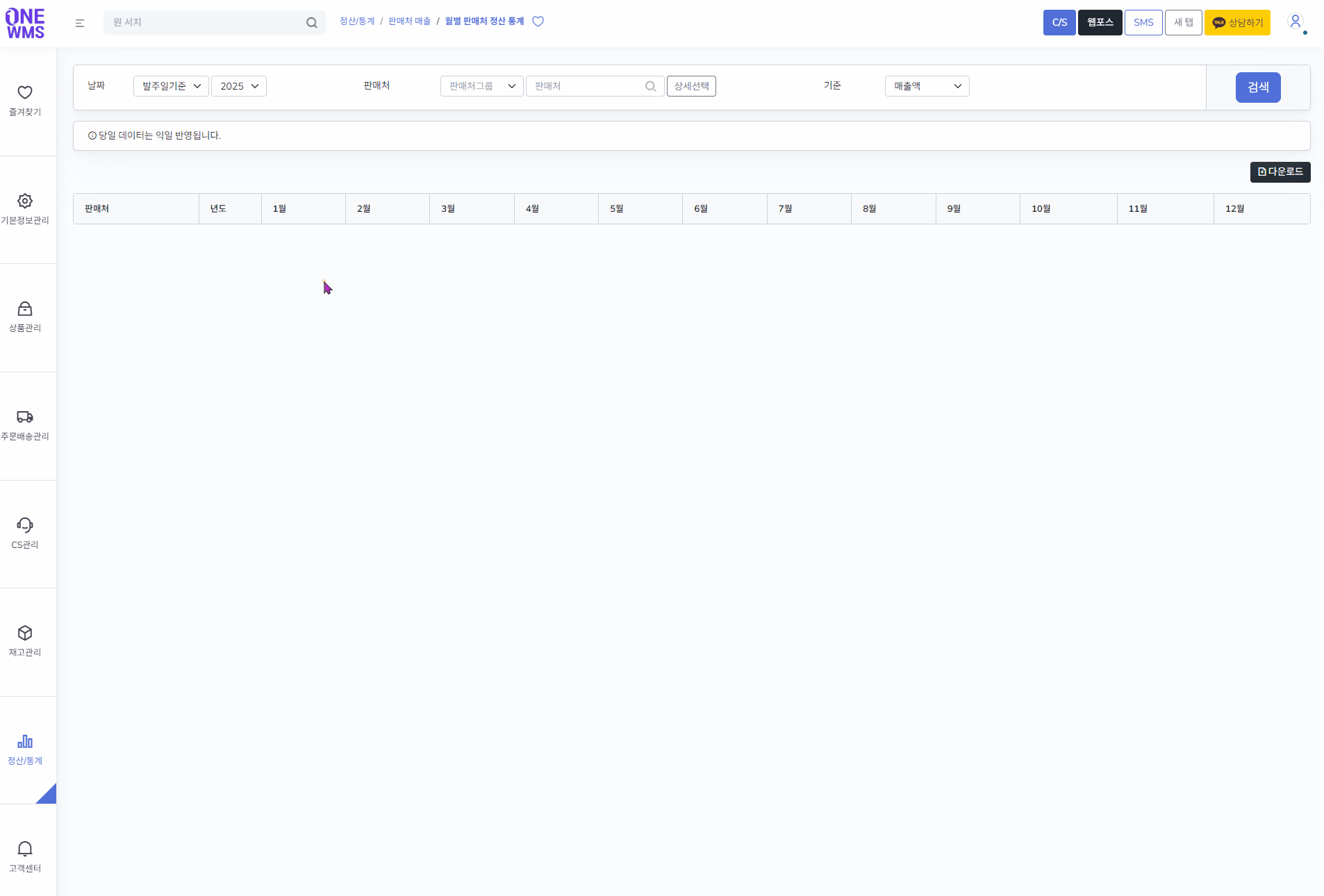 메뉴 경로 : [정산통계 > 판매처 매출 > 월별 판매처 정산 통계]