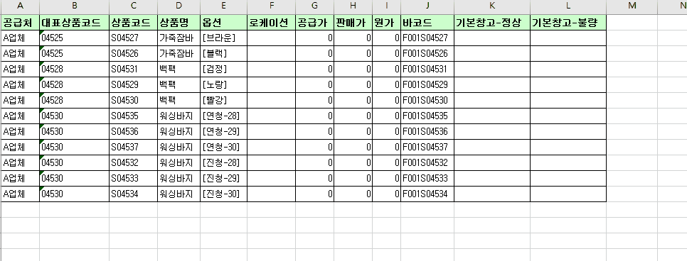STEP 2. 엑셀 파일 재고 입력하기