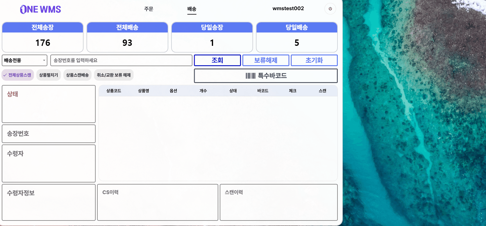 원싱크 내에서 송장번호, 상품바코드 스캔을 통한 배송처리 기반의 작업이 가능합니다.