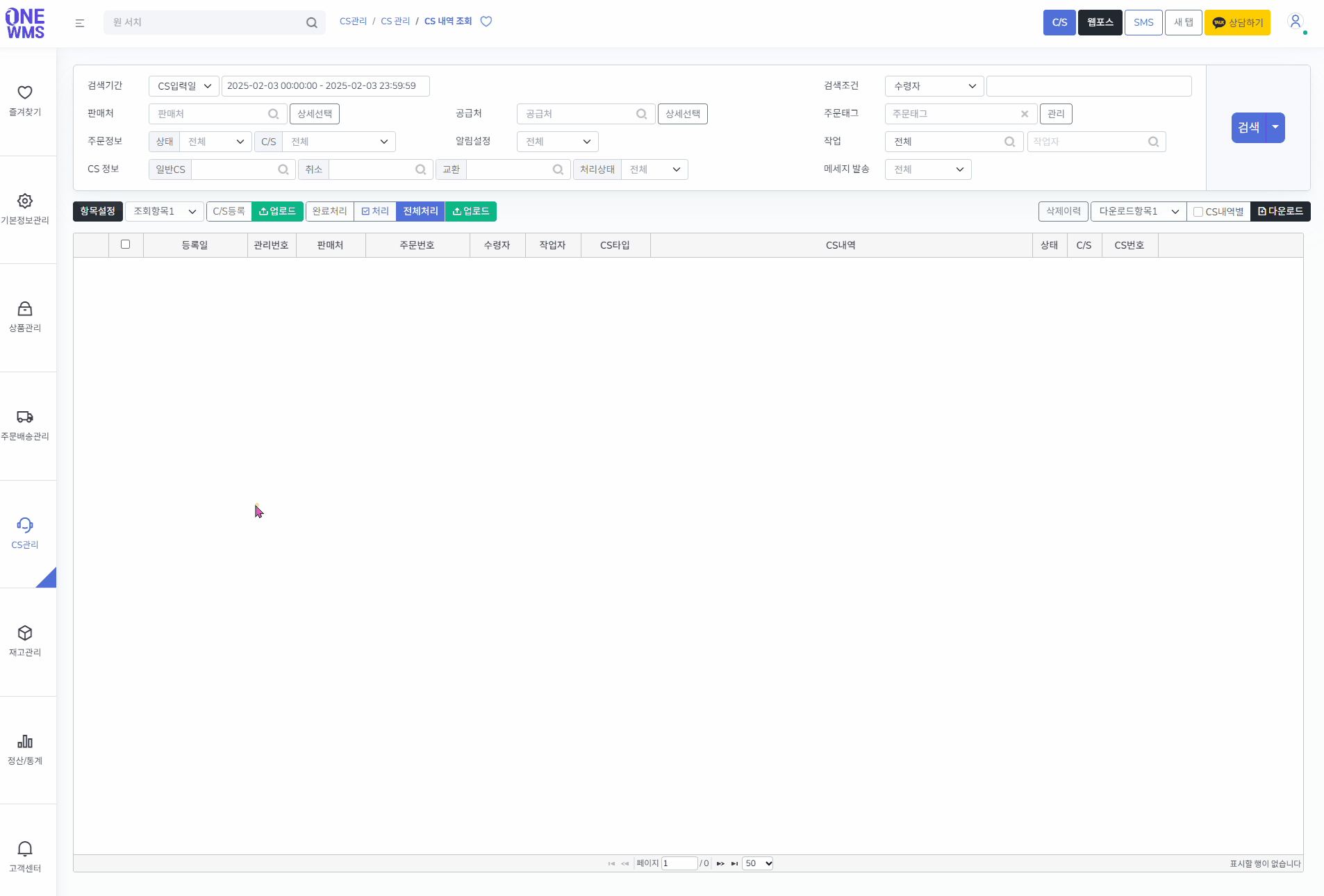 [관리번호]를 클릭하면 CS창으로 이동됩니다.