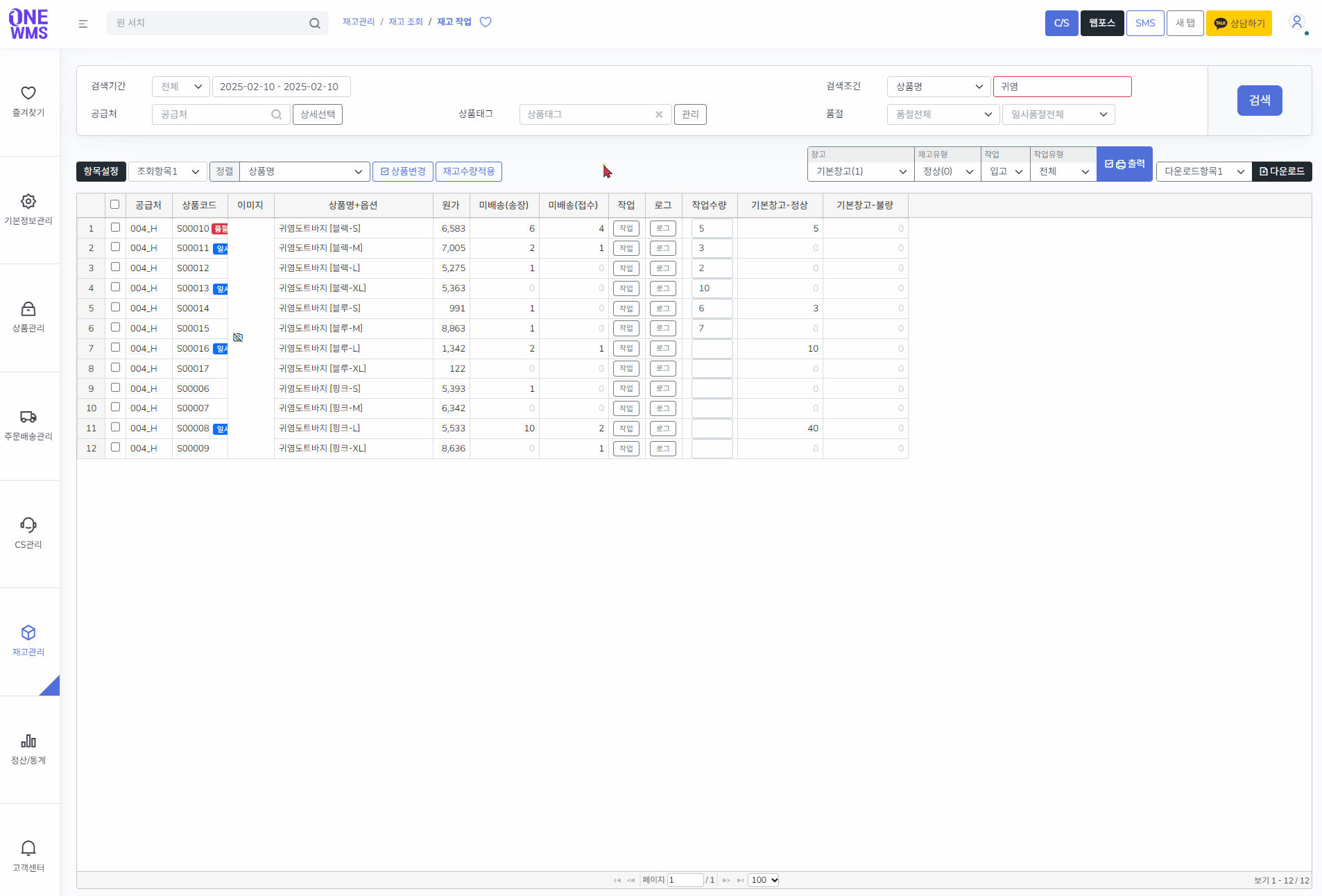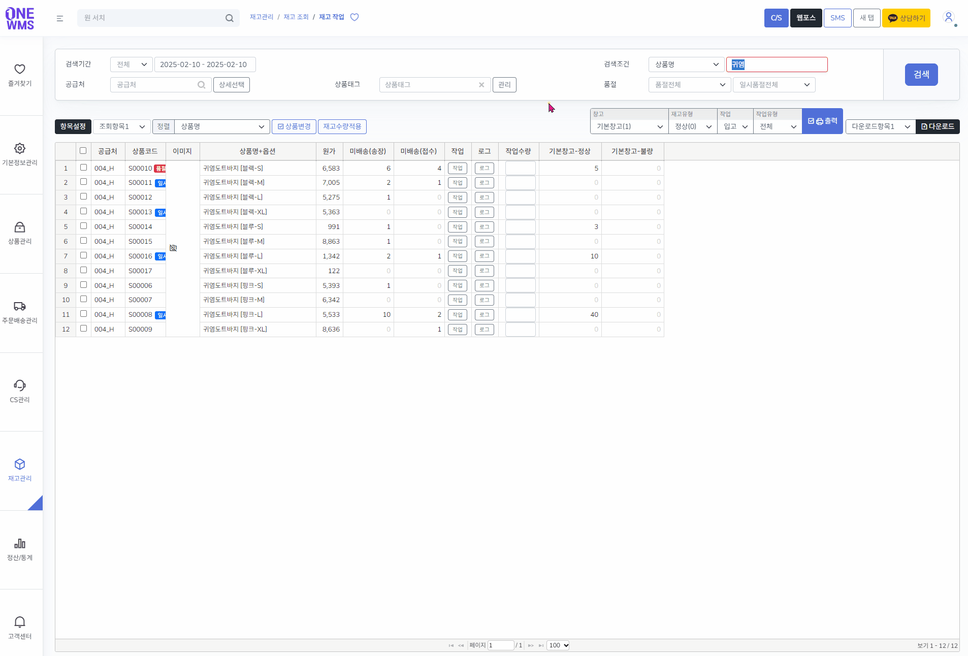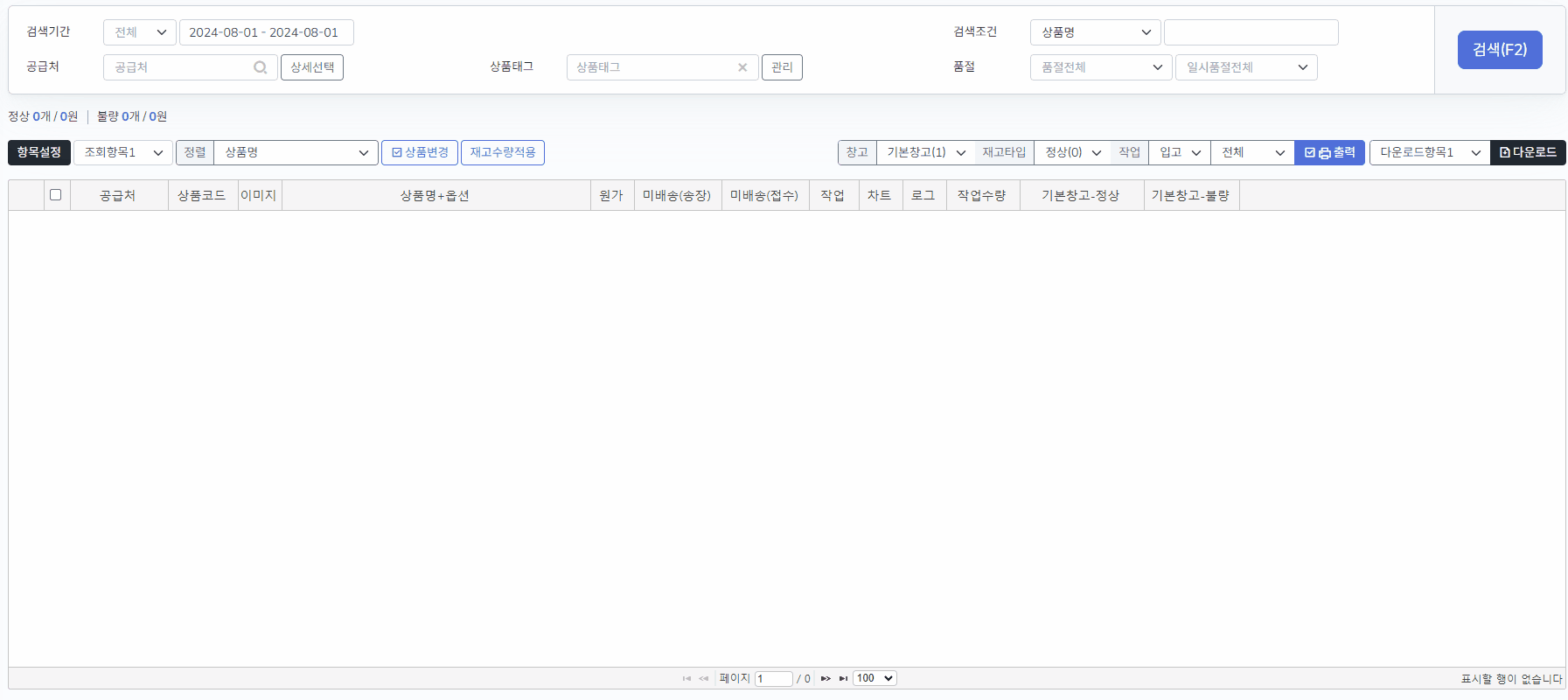 상품 재고 조회 및 작업을 수행 할 수 있는 기능 입니다.