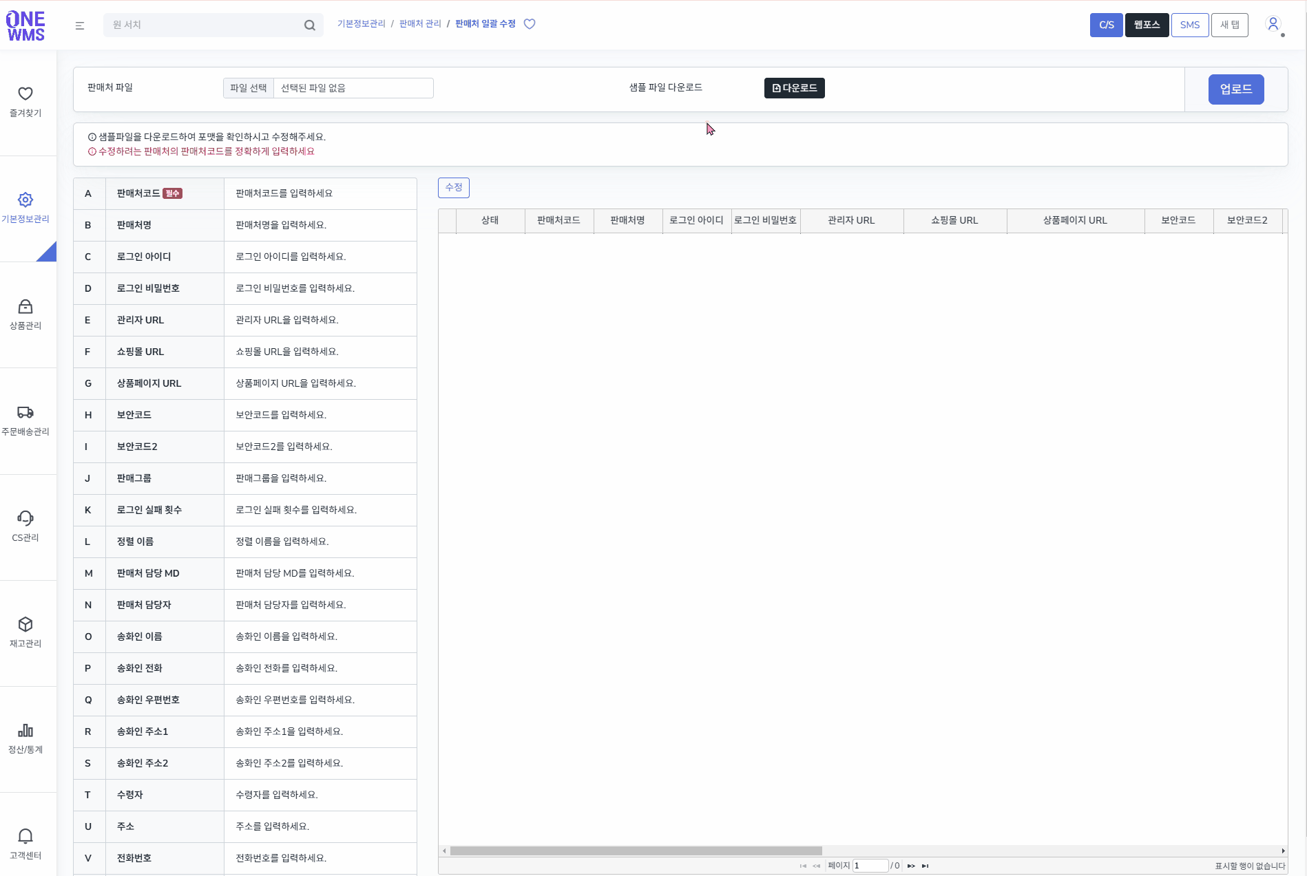메뉴 경로 : [기본정보관리 > 판매처 관리 > 판매처 일괄 등록]