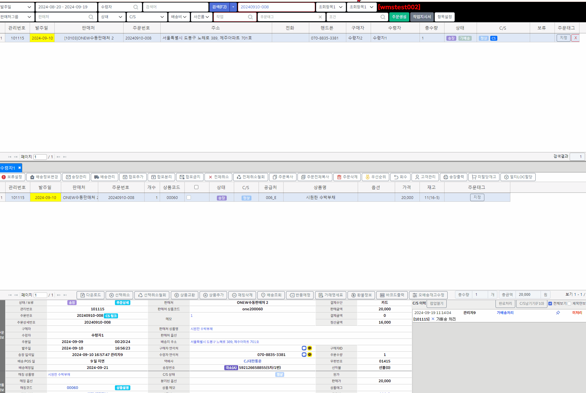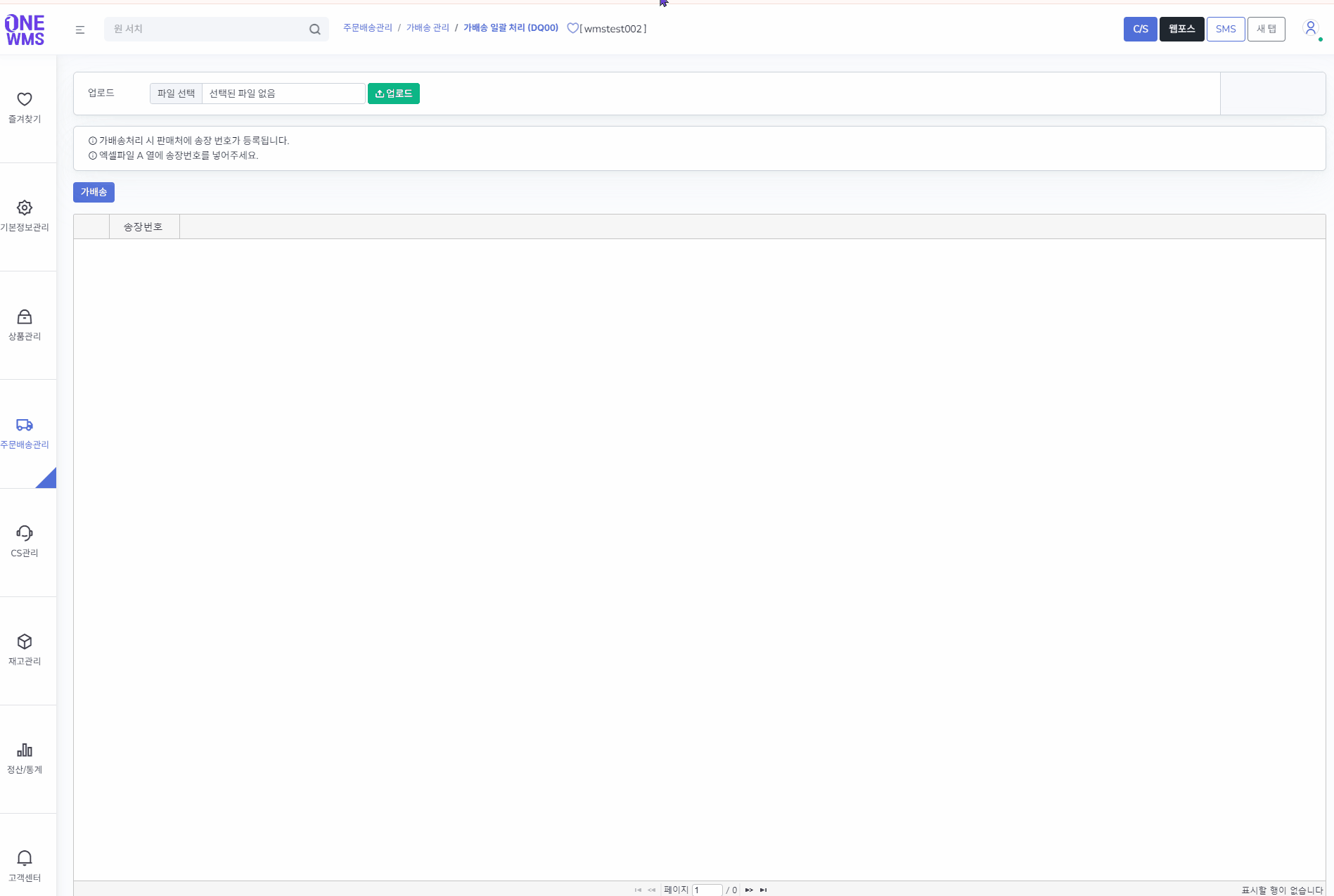 ONEWMS 내에서 상태가 송장인 주문만 가능합니다.