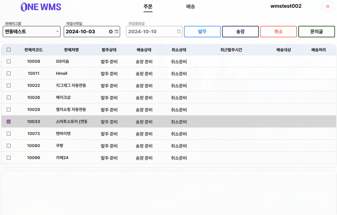 주문수집을 시작하면, 발주상태가 발주중으로 변경됩니다.
