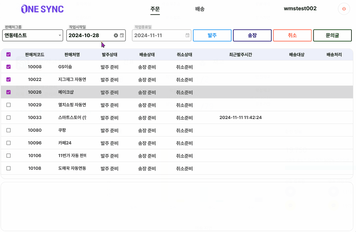 특정 판매처만 체크할 경우, 체크한 판매처에 대해서만 주문 수집이 진행됩니다.