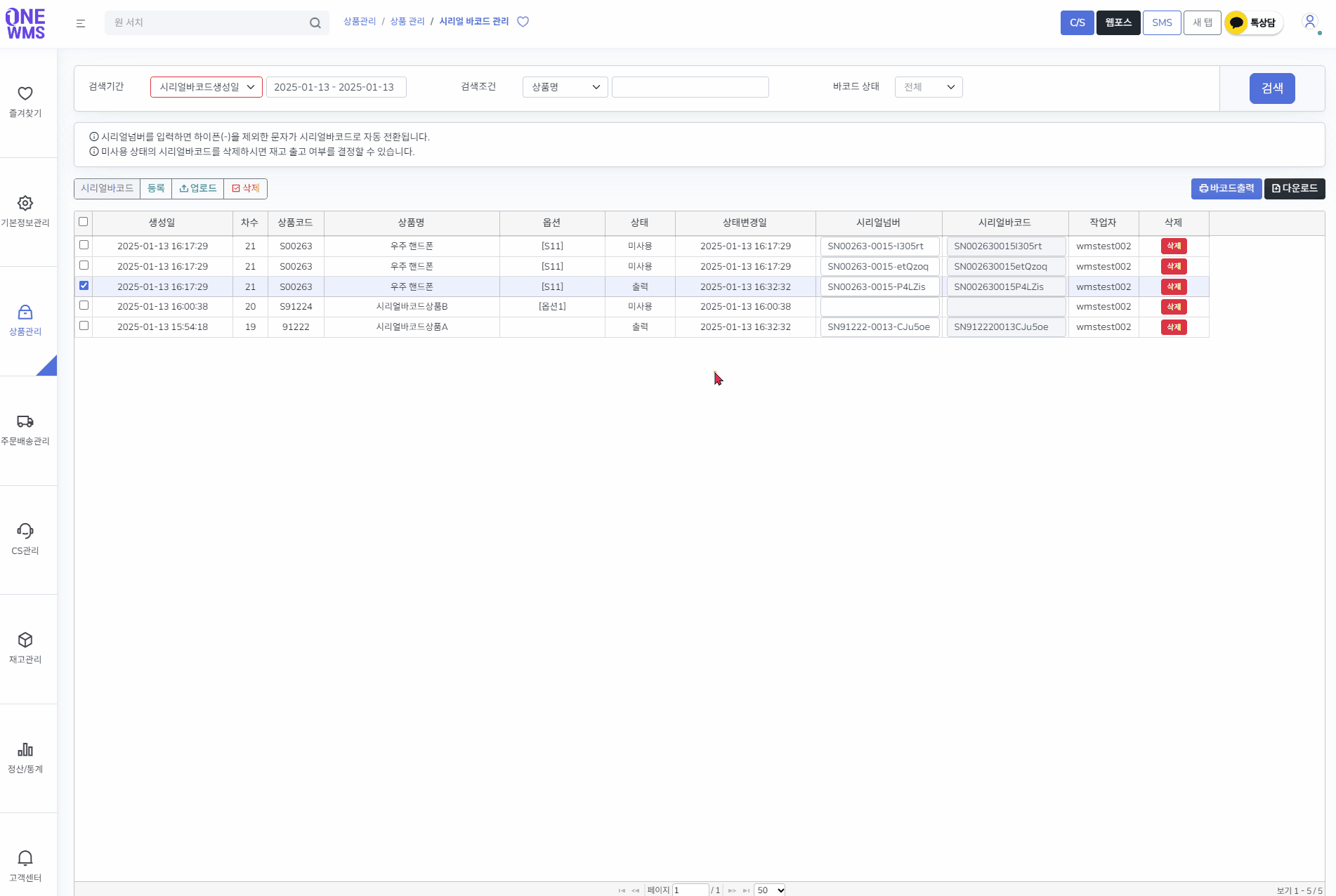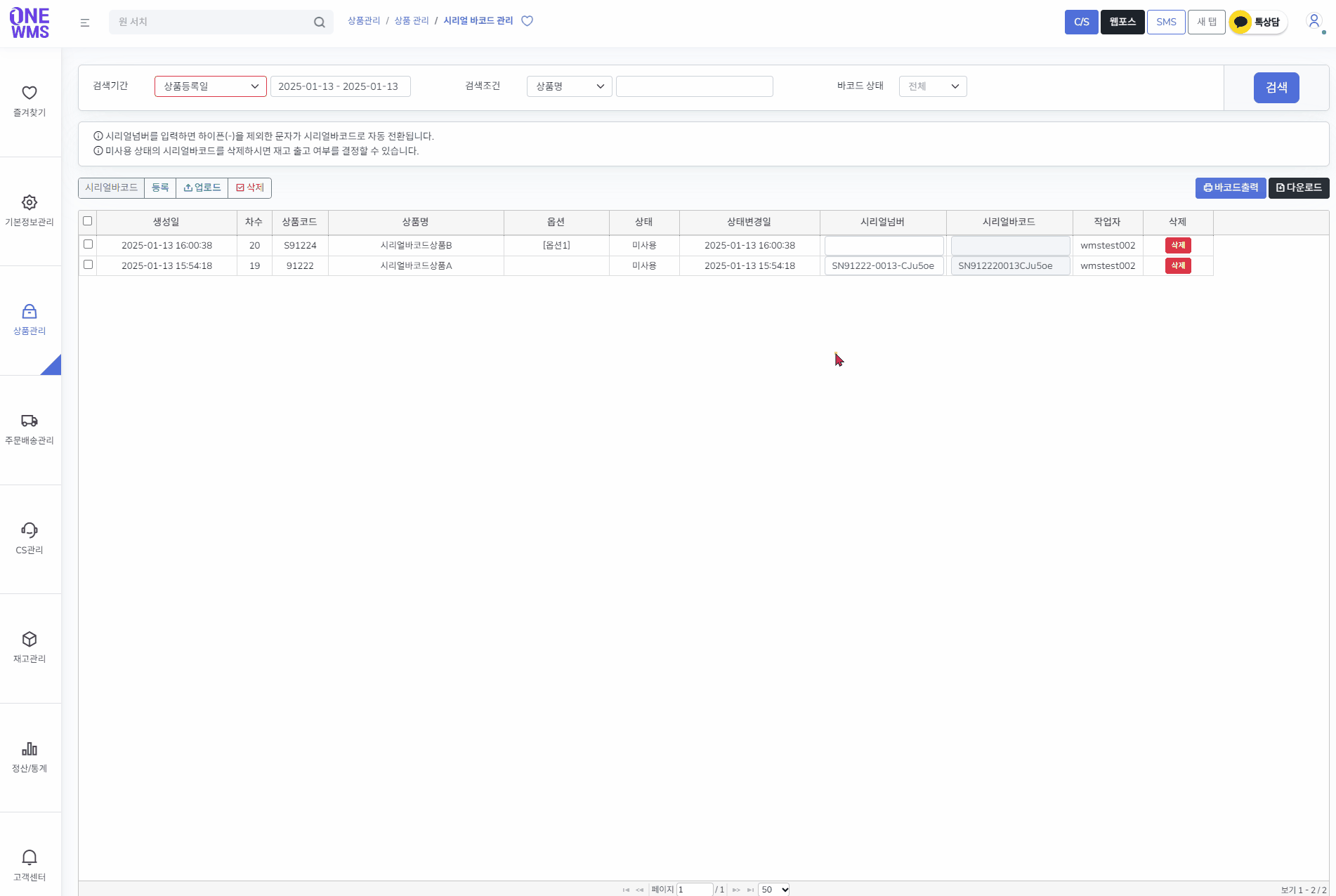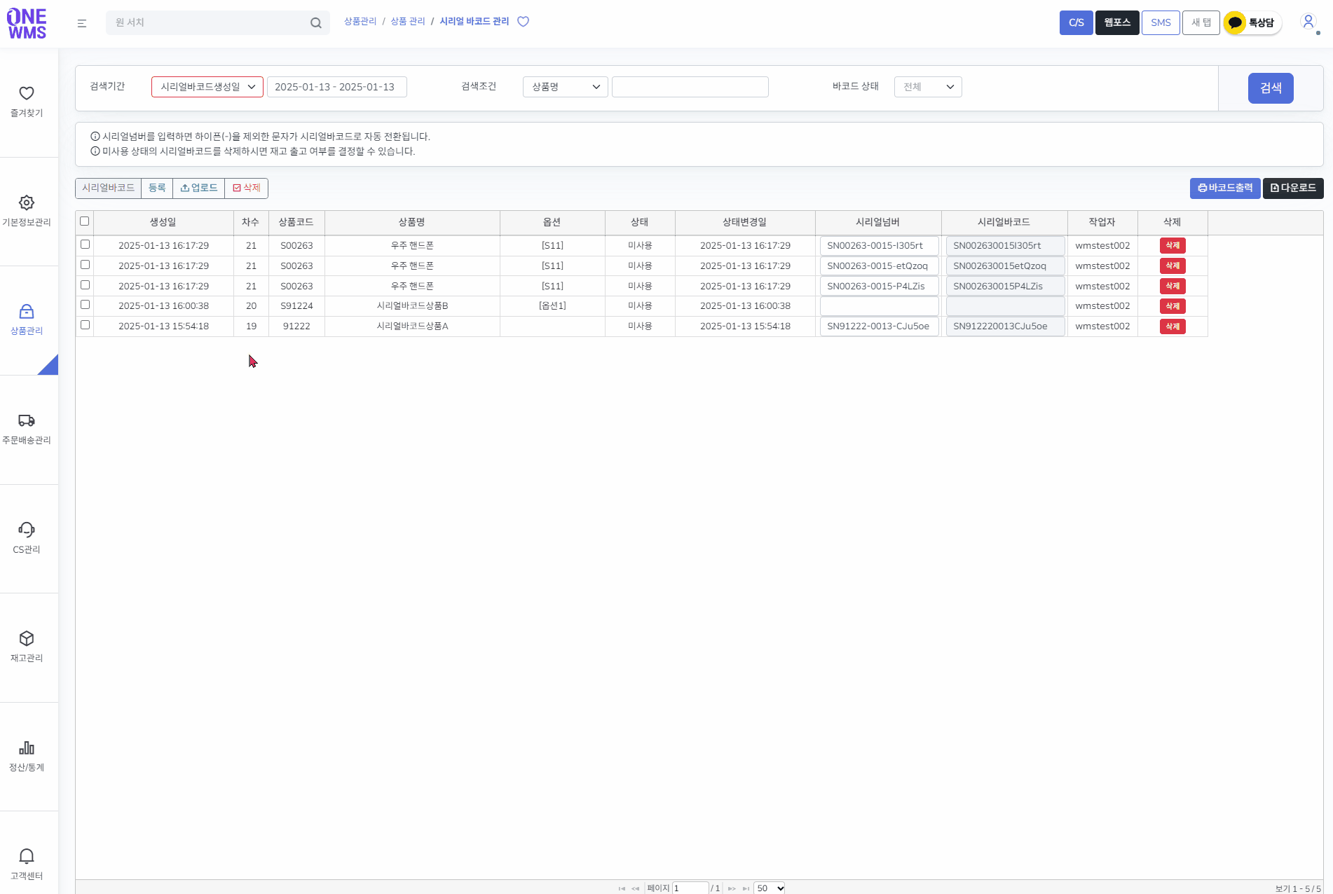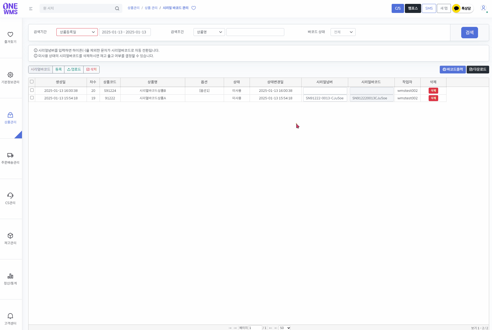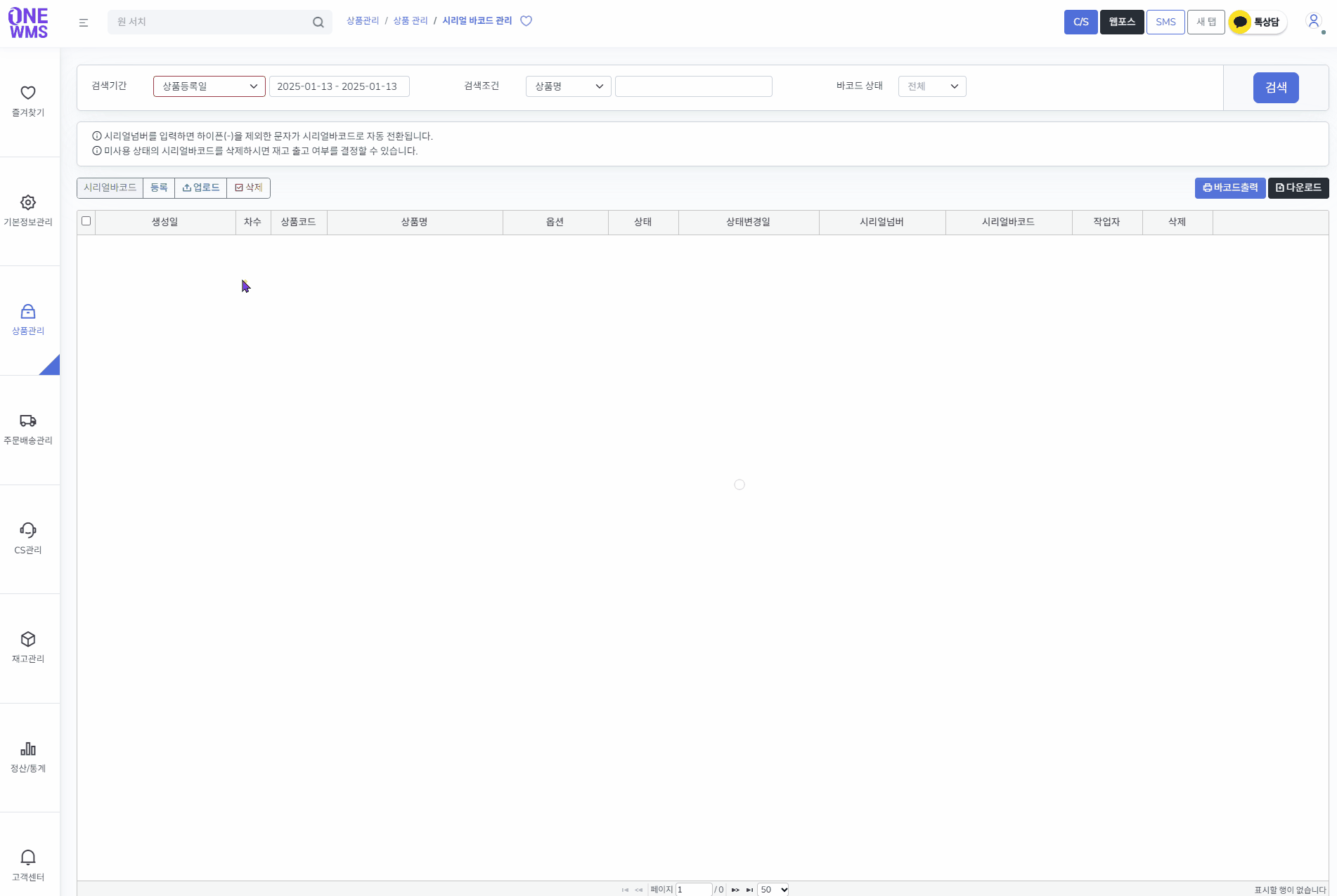 메뉴경로 : [상품관리 > 시리얼 바코드 관리]