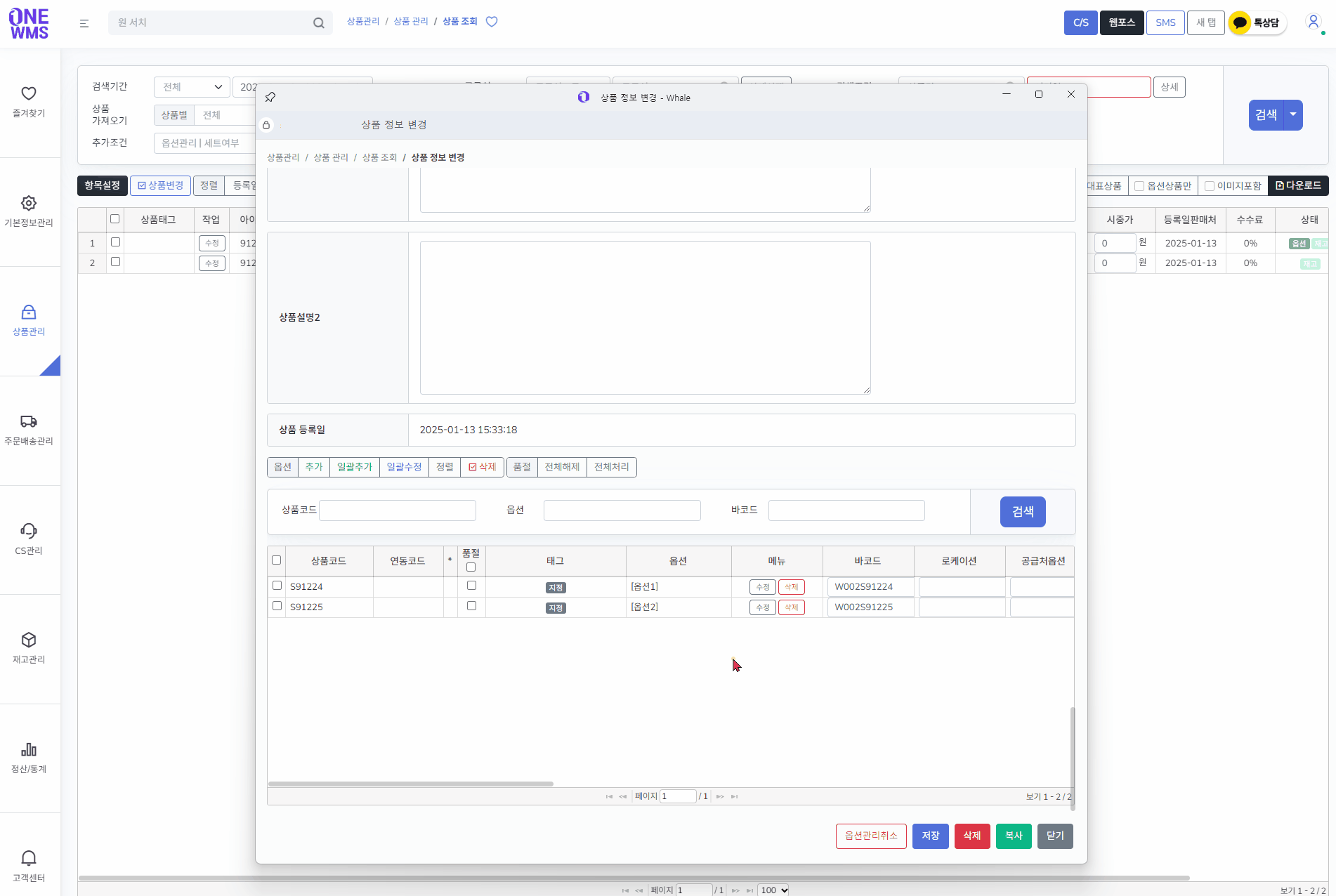 옵션별로 설정하는 경우, 상품의 [수정] 버튼 클릭 후 최하단의 옵션리스트 내 [수정] 버튼을 눌러 수정이 가능합니다.