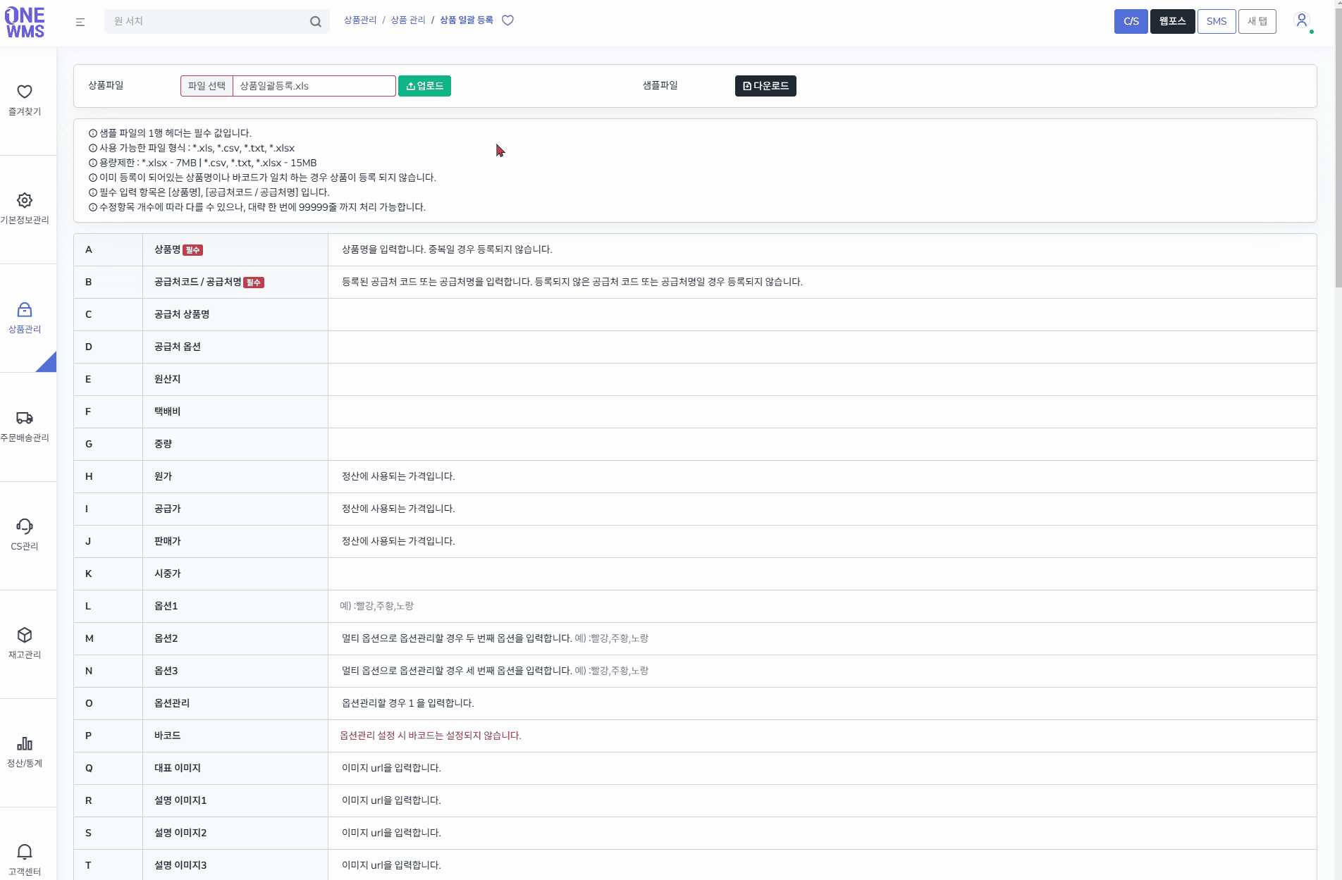 다수의 상품을 엑셀을 통하여 한번에 업로드할 수 있습니다.