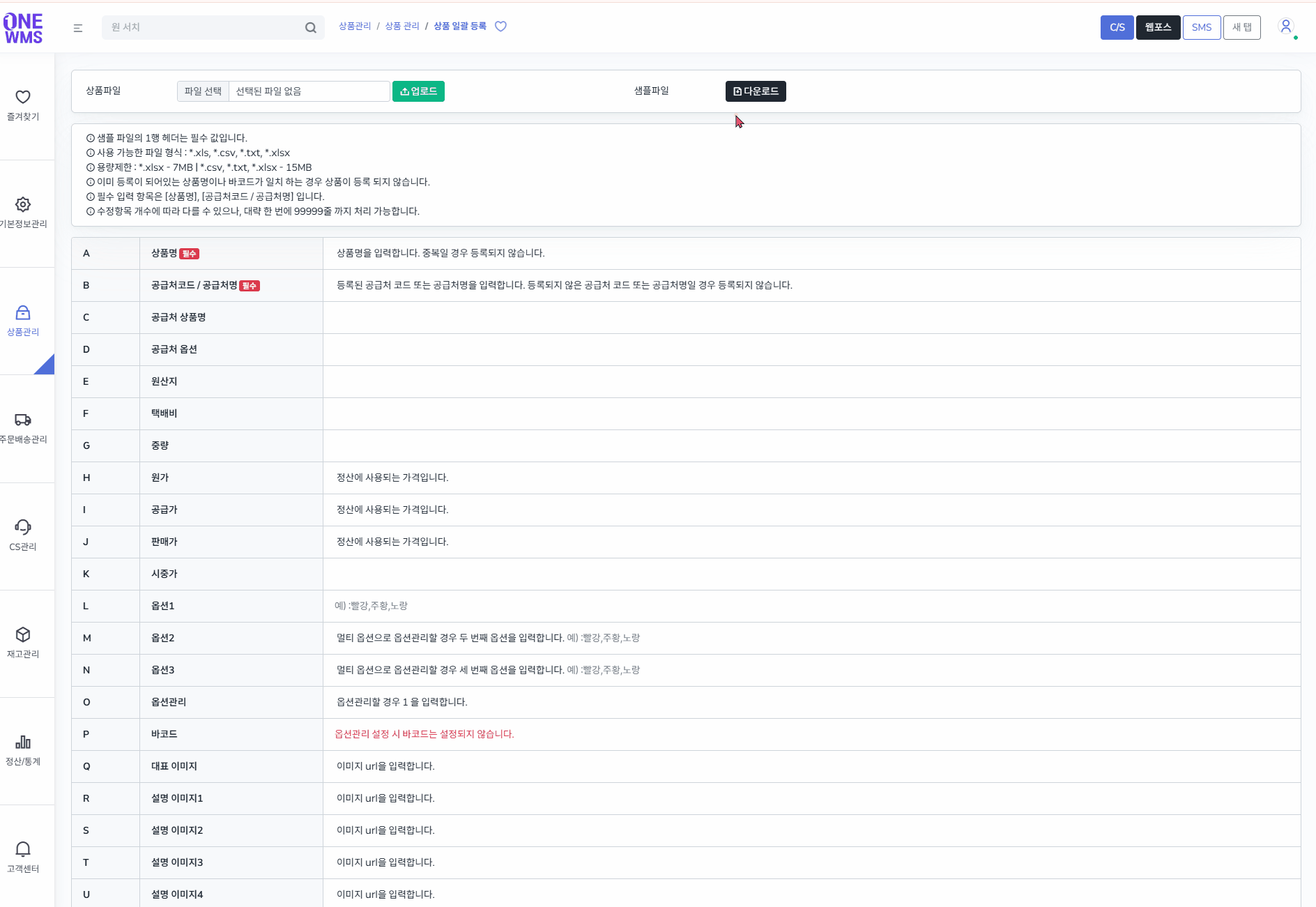 메뉴 경로 : [상품관리 > 상품 관리 > 상품 일괄 등록]