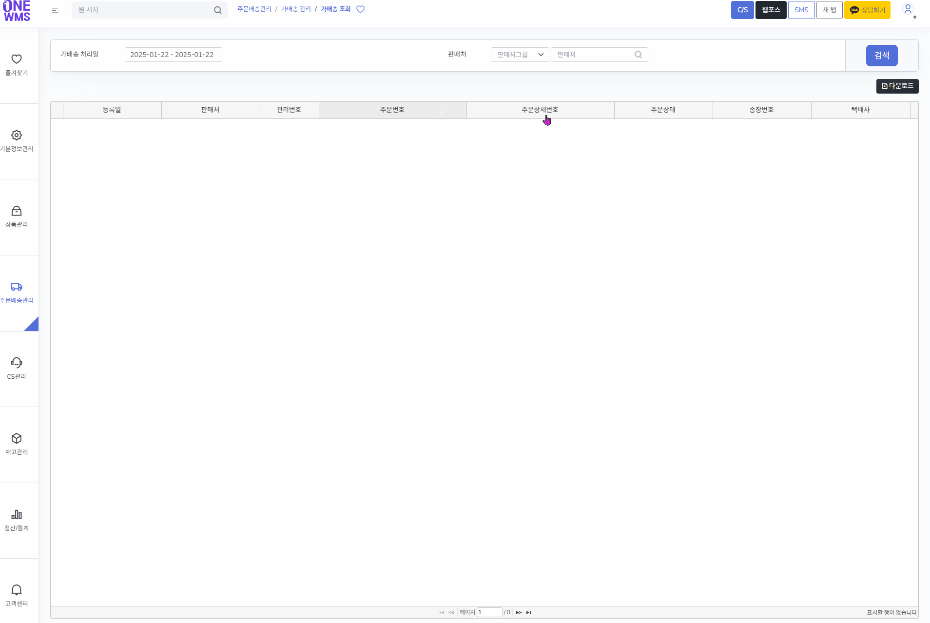 메뉴 경로 : [주문배송관리 >가배송 관리 > 가배송 조회]